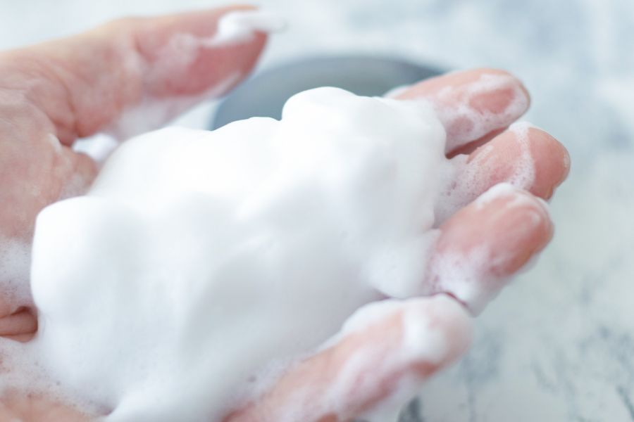 洗顔前に手を洗い、顔を水またはぬるま湯で濡らします。その後、洗顔料をしっかりと泡立て、たっぷりの泡を肌の上にのせましょう。