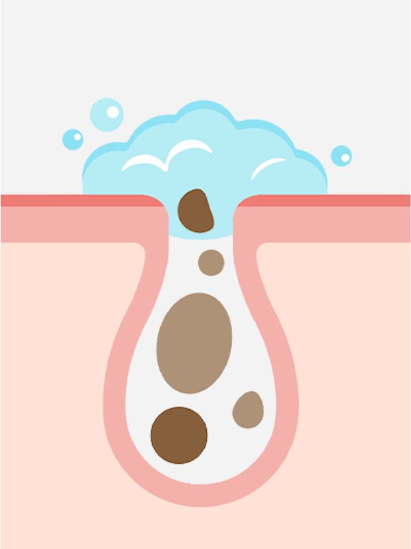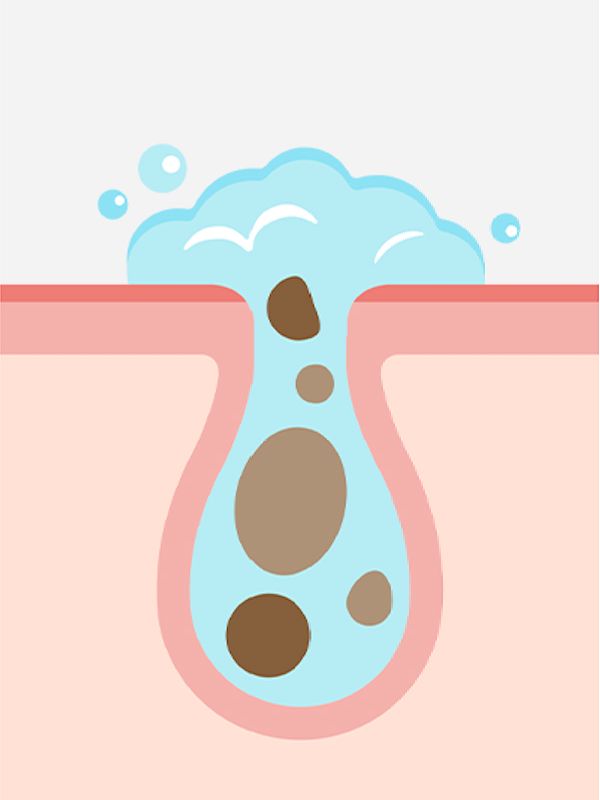 細かなマイナス電子の泡が毛穴の奥までしっかり浸透し、プラス電子の皮脂や化粧汚れを吸着して洗い流します。